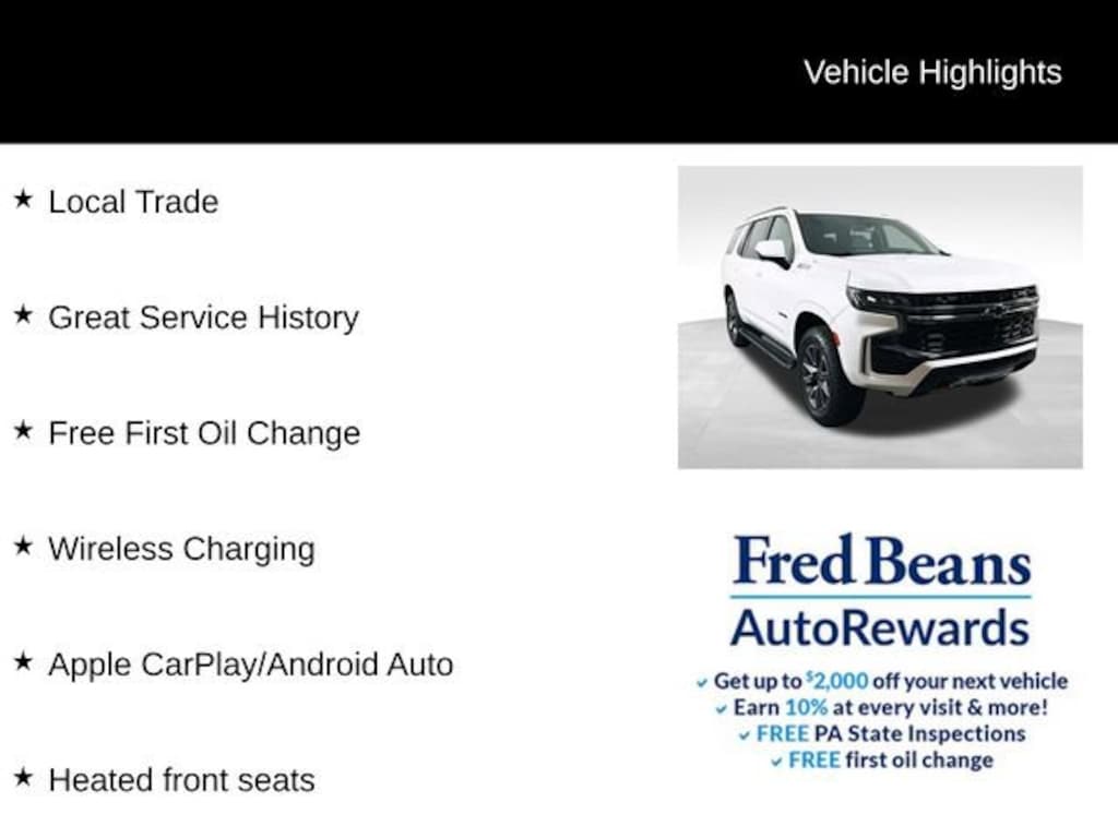 2022 Chevrolet Tahoe Z71 EcoTec3 5.3L V8 10-Speed Automatic with Overdrive 4WD 4D Sport Utility Iridescent Pearl Tricoat Local Trade, Great Service History, Free First Oil Change, 4WD, Black Leather, Apple CarPlay/Android Auto, Heated front seats, Wireless Charging.