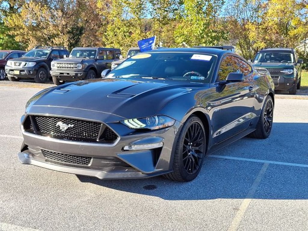 Recent Arrival! 2019 Ford Mustang GT Premium 5.0L V8 Ti-VCT 10-Speed Automatic RWD 2D Coupe Magnetic Local Trade, 3 Month / 4,000 Mile Comprehensive Warranty, Free First Oil Change, 5 Day Return / 30 Day Exchange, 3.73 TORSEN Differential Ltd Slip Rear Axle Ratio, Adaptive Cruise Control, Automatic High Beam, Blind Spot Info System w/Cross-Traffic Alert, Electronic Stability Control, Engine Spun Aluminum Instrument Panel, Equipment Group 401A, Exterior Parking Camera Rear, Ford Safe & Smart Package, Front dual zone A/C, Gauge Pack (Oil Pressure & Vacuum), GT Performance Package, HD Front Springs, Heated front seats, Lane-Keeping Alert, Larger Brake Rotors, Larger Radiator, Leather Bucket Seats w/Color Accents, Memory Driver Seat, Mirrors & Ambient Lighting, Pre-Collision Assist w/Pedestrian Detection, Rain-Sensing Windshield Wipers, Unique Stability Control, Ventilated front seats, Wheels: 19" x 9" Fr & 19" x 9.5" Rr Ebony Black.