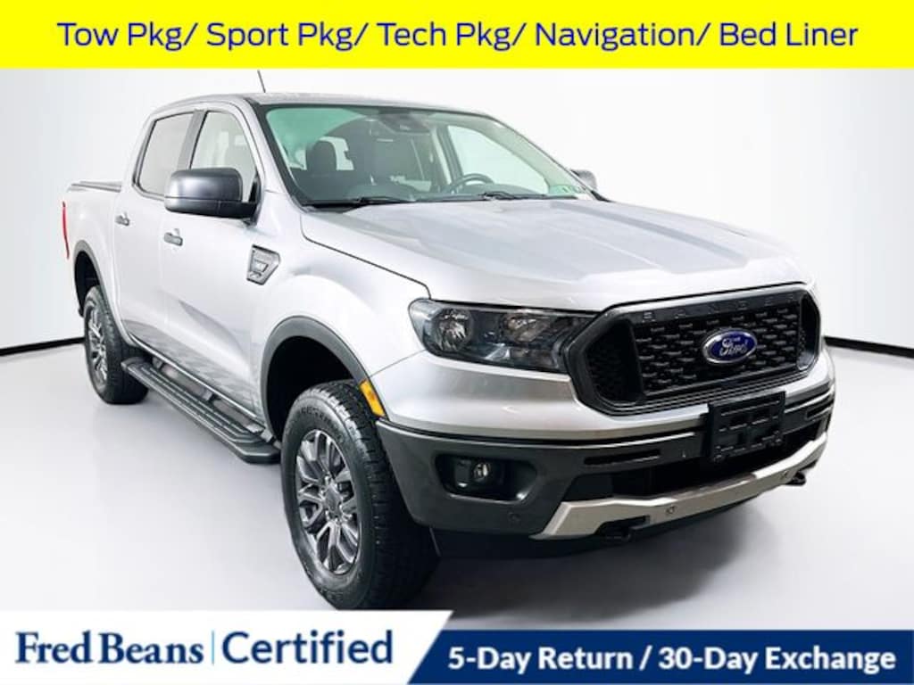 2022 Ford Ranger XLT EcoBoost 2.3L I4 GTDi DOHC Turbocharged VCT 10-Speed Automatic 4WD 4D Crew Cab Iconic Silver Metallic Ford Gold Certified, 7 Year / 100k Powertrain Warranty, 12 Month / 12,000 Mile Comprehensive Warranty, 110V AC Power Outlet, 5" Rectangular Black Running Boards, Adaptive Cruise Control, AM/FM radio: SiriusXM, Auto-Dimming Rear-View Mirror, Automatic temperature control, Equipment Group 302A High, Exterior Parking Camera Rear, Forward Sensing System, Front Bucket Seats, Front dual zone A/C, Front fog lights, Heated Front Seats, Leather-Wrapped Shifter, Leather-Wrapped Steering Wheel, Manual-Sliding Rear-Window, Navigation, Power Mirrors w/Heated Glass, Rear window defroster, Remote Start, Reverse Sensing System, Sport Appearance Package, SYNC 3/Apple CarPlay/Android Auto, Technology Package, Tilt steering wheel, Tough Bed Spray-In Bedliner, Trailer Tow Package, Wheels: 17" Magnetic Painted Aluminum.