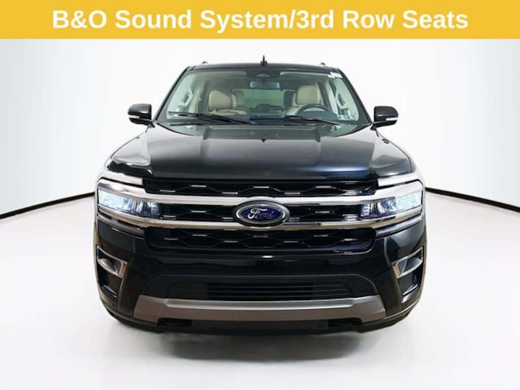 4WD, 12 Speakers, 3.31 Axle Ratio, 3rd row seats: split-bench, 4-Wheel Disc Brakes, ABS brakes, Adjustable pedals, Air Conditioning, Alloy wheels, AM/FM radio: SiriusXM with 360L, Auto High-beam Headlights, Auto-dimming Rear-View mirror, Automatic temperature control, Brake assist, Compass, Delay-off headlights, Driver door bin, Driver vanity mirror, Dual front impact airbags, Dual front side impact airbags, Electronic Stability Control, Emergency communication system: SYNC 4 911 Assist, Equipment Group 301A Mid Package, Exterior Parking Camera Rear, Four wheel independent suspension, Front anti-roll bar, Front Bucket Seats, Front Center Armrest, Front dual zone A/C, Front fog lights, Front reading lights, Fully automatic headlights, Garage door transmitter, Heated & Ventilated Leather Front Captain's Chairs, Heated door mirrors, Heated front seats, Heated steering wheel, Illuminated entry, Leather steering wheel, Low tire pressure warning, Memory seat, Navigation system: Connected Navigation, Occupant sensing airbag, Outside temperature display, Overhead airbag, Overhead console, Panic alarm, Panoramic Vista Roof, Passenger door bin, Passenger vanity mirror, Pedal memory, Power door mirrors, Power driver seat, Power Liftgate, Power moonroof, Power passenger seat, Power steering, Power windows, Radio data system, Radio: B&O Sound System by Bang & Olufsen, Rain sensing wipers, Rear air conditioning, Rear anti-roll bar, Rear reading lights, Rear window defroster, Rear window wiper, Reclining 3rd row seat, Remote keyless entry, Second Row Power Windows Removal, Security system, SiriusXM w/360L, Speed-sensing steering, Speed-Sensitive Wipers, Split folding rear seat, Spoiler, Steering wheel memory, Steering wheel mounted audio controls, SYNC 4 w/Enhanced Voice Recognition, Tachometer, Telescoping steering wheel, Tilt steering wheel, Traction control, Trip computer, Turn signal indicator mirrors, Variably intermittent wipers, Ventilated front seats, Voltmeter, Wheels: 20" Bright Machined Aluminum.