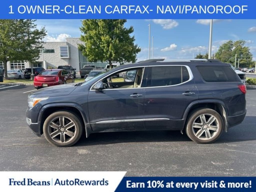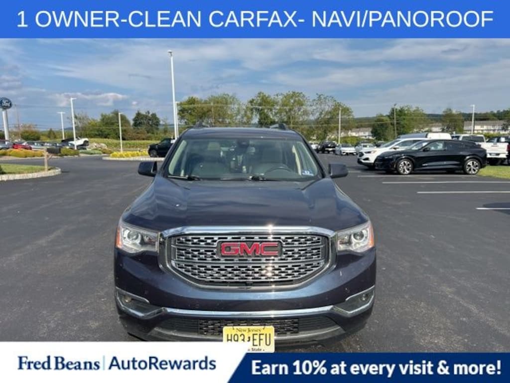 2019 GMC Acadia Denali 3.6L V6 SIDI 6-Speed Automatic AWD 4D Sport Utility Blue Steel Metallic Local Trade, Factory Certified Vehicle, Free First Oil Change, 5 Day Return / 30 Day Exchange, Auto Reward Program, FORD BLUE CERTIFIED, 90 DAY/4,000 MILE COVERAGE, CALL NOW !!! - 908-835-8100, AWD, Cocoa/ Shale Leather, 2-Position Memory Driver Seat, 3.16 Axle Ratio, 3rd row seats: split-bench, 4-Wheel Disc Brakes, 6-Passenger (2-2-2 Seating Configuration), 8 Speakers, 8-Way Power Front Passenger Seat Adjuster, ABS brakes, Advanced Adaptive Cruise Control, Air Conditioning, Alloy wheels, AM/FM radio: SiriusXM, Apple CarPlay/Android Auto, Auto High-beam Headlights, Auto-dimming door mirrors, Auto-dimming Rear-View mirror, Automatic temperature control, Bird's Eye View Surround Vision, Bose Premium 8-Speaker System, Brake assist, Bumpers: body-color, Compass, Delay-off headlights, Driver door bin, Driver vanity mirror, Dual front impact airbags, Dual front side impact airbags, Dual SkyScape 2-Panel Power Sunroof, Electronic Cruise Control w/Set & Resume Speed, Electronic Stability Control, Emergency communication system: OnStar and GMC connected services capable, Exterior Parking Camera Rear, Forward Automatic Braking, Four wheel independent suspension, Front & Rear Splash Guards, Front anti-roll bar, Front Bucket Seats, Front Center Armrest, Front dual zone A/C, Front fog lights, Front reading lights, Fully automatic headlights, Garage door transmitter, Heated door mirrors, Heated Driver & Front Passenger Seats, Heated front seats, Heated rear seats, Heated steering wheel, High-Intensity Discharge Headlights, Illuminated entry, Knee airbag, Low tire pressure warning, Memory seat, Navigation System, Occupant sensing airbag, Outside temperature display, Overhead airbag, Overhead console, Panic alarm, Passenger door bin, Passenger vanity mirror, Perforated Leather-Appointed Seat Trim, Power door mirrors, Power Driver Lumbar Control Seat Adjuster, Power driver seat, Power Liftgate, Power Passenger Lumbar Control Seat Adjuster, Power passenger seat, Power steering, Power windows, Preferred Equipment Group 5SA, Premium audio system: GMC Infotainment System, Radio data system, Radio: AM/FM w/8" Diagonal Color Touch Screen & Nav, Rear air conditioning, Rear anti-roll bar, Rear reading lights, Rear window defroster, Rear window wiper, Remote keyless entry, Roof rack: rails only, Security system, SiriusXM Radio, Speed control, Speed-sensing steering, Spoiler, Steering wheel mounted audio controls, Tachometer, Technology Package, Telescoping steering wheel, Tilt steering wheel, Traction control, Trip computer, Variably intermittent wipers, Ventilated Driver & Front Passenger Seats, Ventilated front seats, Voltmeter, Wheels: 20" x 8.0" Polished Aluminum (4).