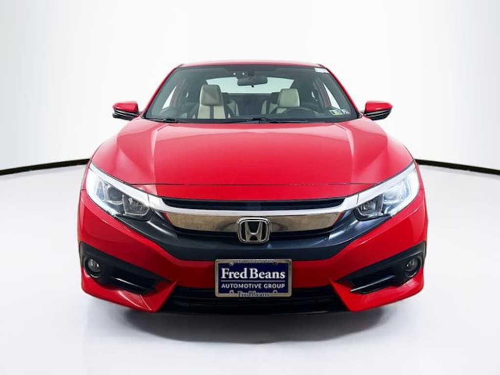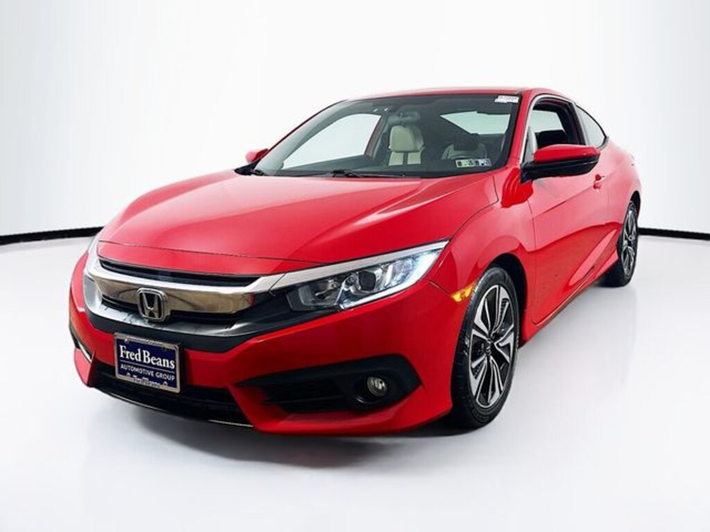 2018 Honda Civic EX-T 1.5L I-4 DI DOHC Turbocharged CVT FWD 2D Coupe Red Triton Certified Vehicle, 7 Year / 100k Powertrain Warranty, 12 Month / 12,000 Mile Comprehensive Warranty, Factory Certified Vehicle, Free First Oil Change, 5 Day Return / 30 Day Exchange, Auto Reward Program, Black/Ivory w/Fabric Seating Surfaces, 10 Speakers, ABS brakes, Alloy wheels, Apple CarPlay/Android Auto, Automatic temperature control, Brake assist, Cloth Seat Trim, Compass, Dual front side impact airbags, Electronic Stability Control, Emergency communication system: HondaLink, Exterior Parking Camera Rear, Four wheel independent suspension, Front anti-roll bar, Front dual zone A/C, Front fog lights, Fully automatic headlights, Heated door mirrors, Low tire pressure warning, Occupant sensing airbag, Outside temperature display, Overhead airbag, Power door mirrors, Power moonroof, Power steering, Power windows, Radio data system, Radio: 450-Watt AM/FM/HD/SiriusXM Audio System, Rear anti-roll bar, Rear window defroster, Reclining Heated Front Bucket Seats, Remote keyless entry, Security system, Speed control, Speed-sensing steering, Split folding rear seat, Steering wheel mounted audio controls, Telescoping steering wheel, Tilt steering wheel, Traction control.