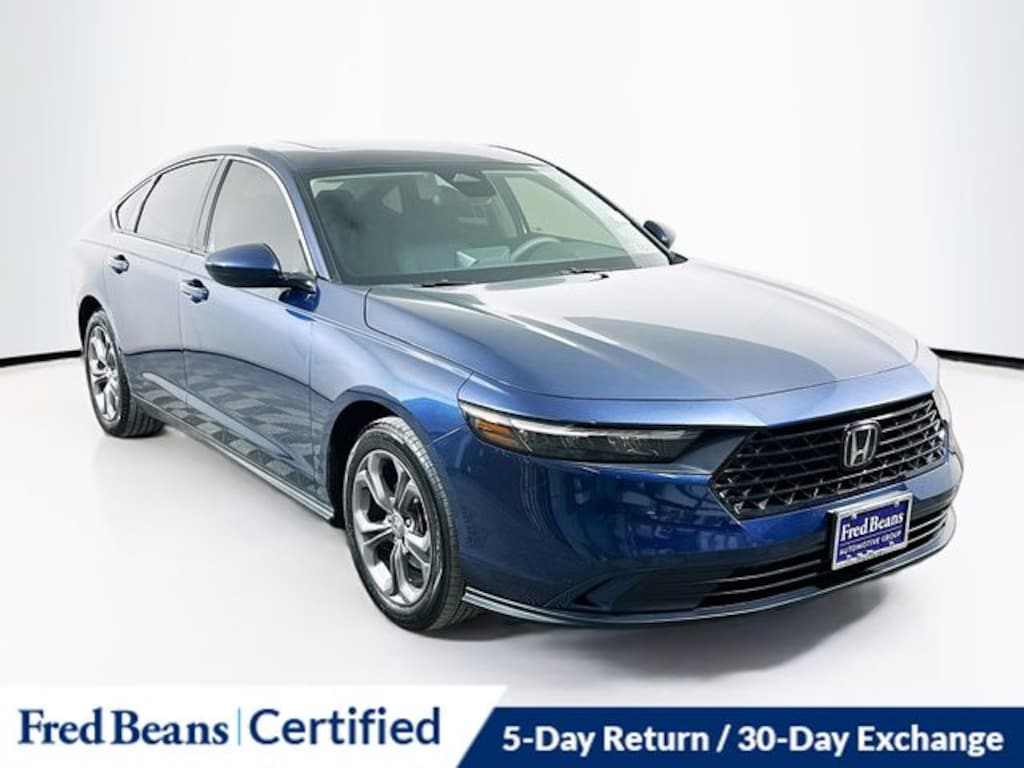 The stunning blue exterior complements the well-appointed interior, which features a wealth of premium amenities, from the heated front seats and power moonroof to the seamless integration of Apple CarPlay and Android Auto. This Accord EX is a true testament to Honda's commitment to quality and innovation.