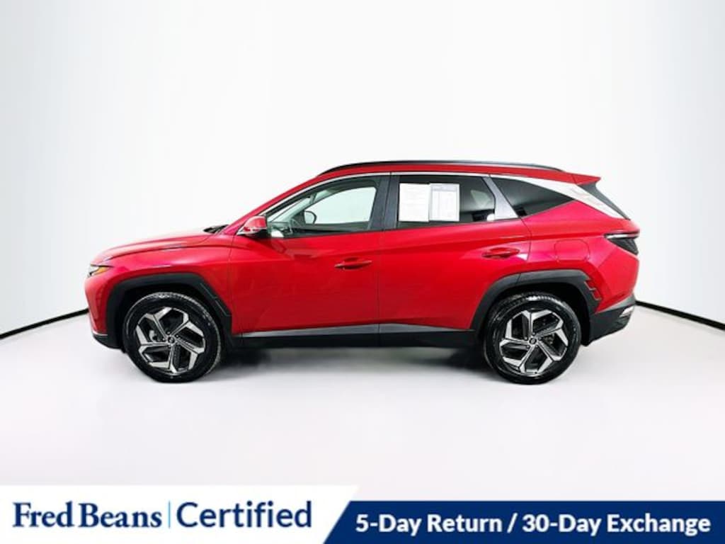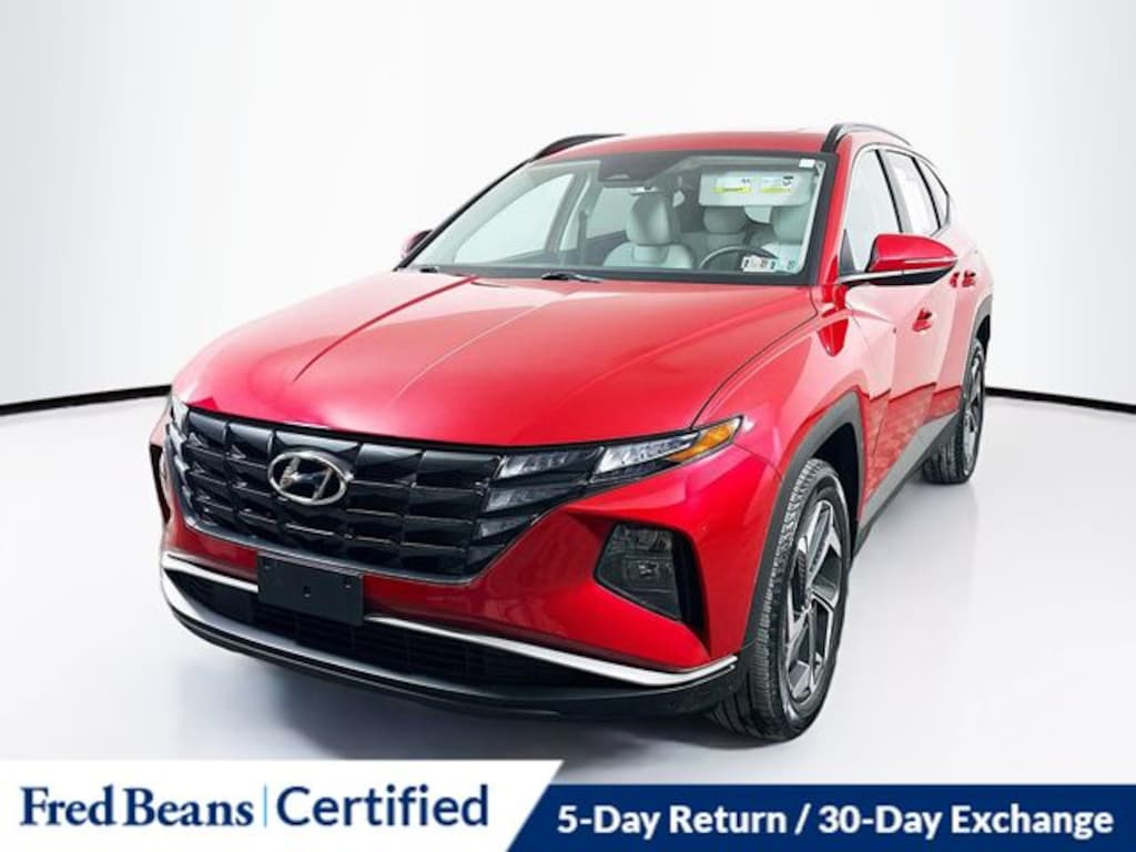 2023 Hyundai Tucson SEL SEL 2.5L I4 DGI DOHC 16V LEV3-ULEV70 187hp 8-Speed Automatic with SHIFTRONIC AWD 4D Sport Utility Calypso Red Local Trade, Great Service History, Factory Certified Vehicle, 5 Day Return / 30 Day Exchange, Auto Rewards Program, AWD, 10.25" Digital Instrument Cluster, Apple CarPlay & Android Auto, Auto High-beam Headlights, Convenience Package, Dual Automatic Temperature Control, H-Tex Seat Trim, Heated door mirrors, Heated Front Bucket Seats, Illuminated entry, Leather-Wrapped Shift Knob, Leather-Wrapped Steering Wheel, Option Group 02, Power door mirrors, Power driver seat, Power Liftgate, Power Sunroof, Radio: AM/FM/HD/SiriusXM Audio System, Remote keyless entry, Steering wheel mounted audio controls, Turn signal indicator mirrors, Wheels: 19" x 7.5J" Machine-Face Finish Alloy.