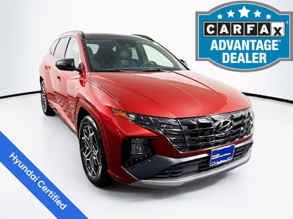 ***One owner Clean Carfax** Recent Arrival! 2023 Hyundai Tucson N Line 2.5L I4 DGI DOHC 16V LEV3-ULEV70 187hp 8-Speed Automatic with SHIFTRONIC FWD 4D Sport Utility Red Crimson Factory Certified Vehicle, Free First Oil Change, 5 Day Return / 30 Day Exchange, Auto Reward Program, AM/FM radio: SiriusXM, Apple CarPlay & Android Auto, Auto High-beam Headlights, Auto-dimming Rear-View mirror, Automatic temperature control, Front dual zone A/C, Fully automatic headlights, Garage door transmitter: HomeLink, Heated door mirrors, Heated Front Bucket Seats, Heated front seats, INFINITY SOUND SYSTEM, Navigation System, Option Group 01, Power door mirrors, Power driver seat, Power Liftgate, Power moonroof, Radio: Bose Premium w/AM/FM/HD/SiriusXM Audio System, Remote keyless entry, Steering wheel mounted audio controls.