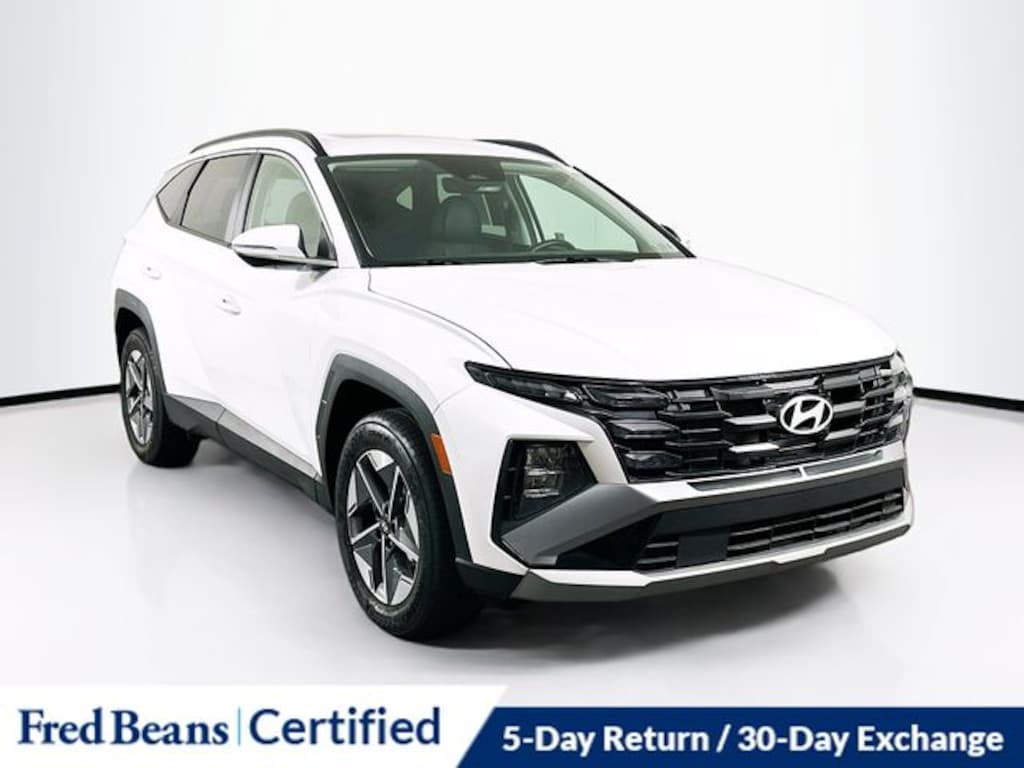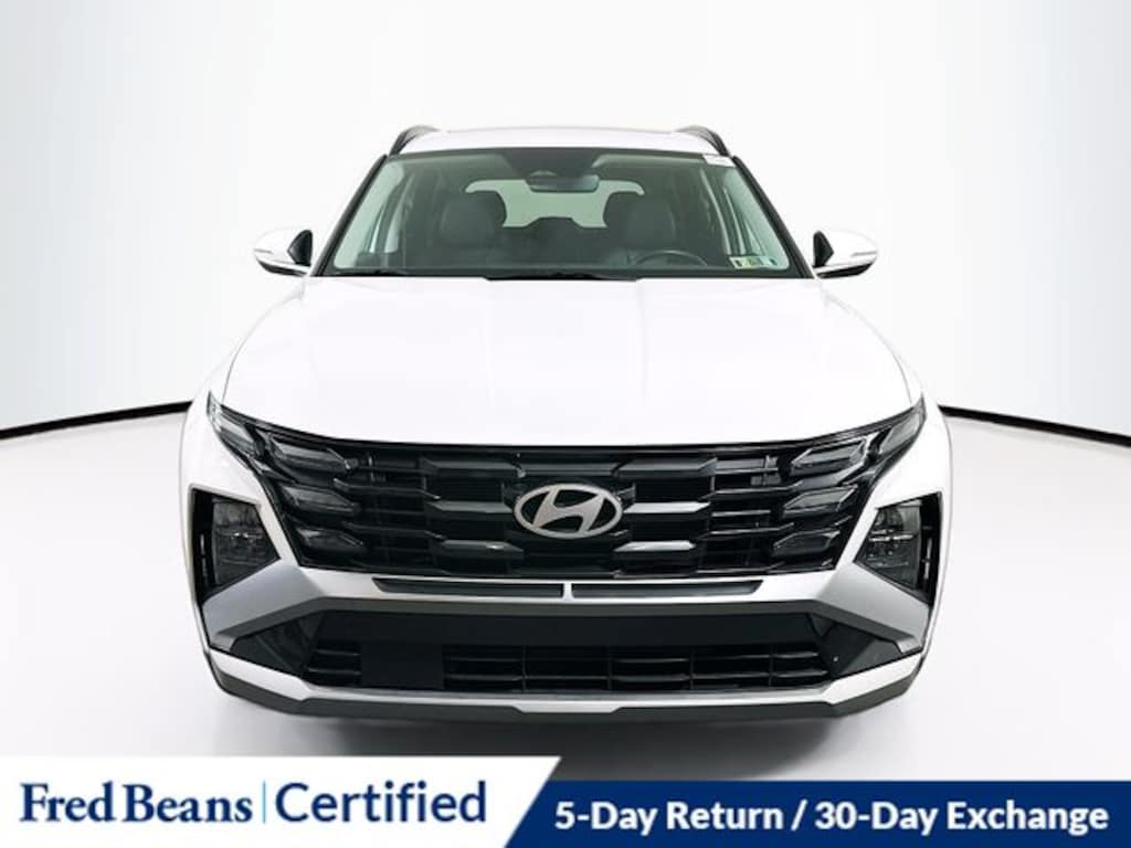 2025 Hyundai Tucson SEL Convenience SEL Convenience 2.5L I4 DGI DOHC 16V LEV3-SULEV30 187hp 8-Speed Automatic with SHIFTRONIC AWD 4D Sport Utility White Pearl Bought & Serviced at Fred Beans, Local Trade, Great Service History, Factory Certified Vehicle, Free First Oil Change, 5 Day Return / 30 Day Exchange, Auto Rewards Program, AWD, 18" Alloy Wheels, Apple CarPlay & Android Auto, Auto High-beam Headlights, Automatic temperature control, Front dual zone A/C, H-Tex Seat Trim, Heated door mirrors, Heated front seats, Illuminated entry, Leather steering wheel, Navigation System, Power door mirrors, Power driver seat, Power Liftgate, Power moonroof, Radio: AM/FM/HD Audio System, Remote keyless entry, Steering wheel mounted audio controls, Turn signal indicator mirrors.