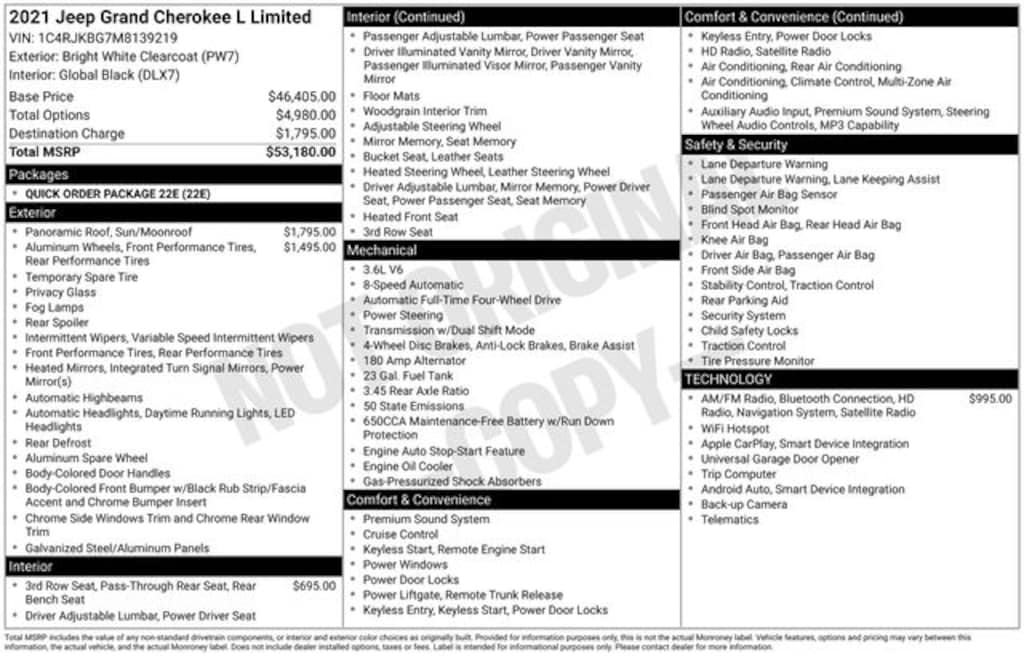 View this 2021  Jeep  Grand Cherokee L SUV  Limited for sale in