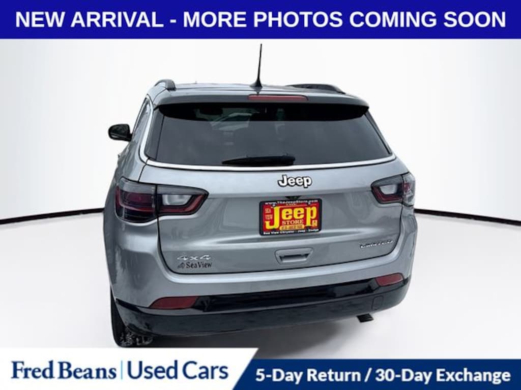 Recent Arrival! 2022 Jeep Compass Limited 2.4L I4 9-Speed 948TE Automatic 4WD 4D Sport Utility Billet Silver Metallic Clearcoat Triton Certified Vehicle, 7 Year / 100k Powertrain Warranty, 12 Month / 12,000 Mile Comprehensive Warranty, 5 Day Return / 30 Day Exchange, Auto Reward Program, 4WD, 10.1" Touchscreen Display, 115V Auxiliary Power Outlet, 2nd Row Heated Seats, 2nd Row USB Type A/C Charge Only, 4G LTE Wi-Fi Hot Spot, Alexa Built-In, Cluster 10.25" TFT Color Display, Connected Travel & Traffic Services, Disassociated Touchscreen Display, Driver Seat Memory, Elite Group, Foot Activated Open 'N Go Liftgate, For Details, Visit DriveUconnect.com, For More Info, Call 800-643-2112, Global Telematics Box Module (TBM), Gloss Black Door Cladding, Gloss Black Exterior Sill, Gloss Black Fascias, Gloss Black Wheel Flares, GPS Navigation, HD Radio, Integrated Voice Command w/Bluetooth, LED Low/Highbeam Projector Headlamps, No Satellite Coverage HI/AK/PR/VI/GU, Power 2-Way Passenger Lumbar Adjust, Power 8-Way Adjust Front Passenger Seat, Power Liftgate, Premium Leather Trimmed Bucket Seats, Premium LED Fog Lamps, Premium Taillamps, Quick Order Package 2GG, Radio: Uconnect 5 Nav w/10.1" Display, Reversible Carpet/Vinyl Cargo Mat, SiriusXM Guardian - Included Trial (B), SiriusXM Radio Service, SiriusXM Satellite Radio, SiriusXM w/360L, Wheels: 19" x 7.5" Painted Diamond Cut Aluminum.