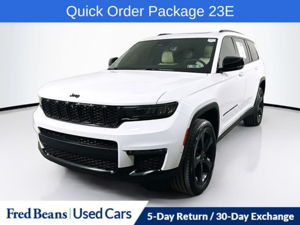 Recent Arrival! 2023 Jeep Grand Cherokee L Limited 3.6L V6 24V VVT 8-Speed Automatic 4WD 4D Sport Utility Bright White Clearcoat Great Service History, 2nd Row Manual Window Shades, Auto-Dimming Exterior Driver Mirror, Black Appearance Package, Capri Leatherette w/Axis II Seats, Dual-Pane Panoramic Sunroof, Gloss Black Exterior Accents, Heated front seats, Heated rear seats, Heated steering wheel, Integrated Off-Road Camera, Interior Rear Facing Camera, Intersection Collision Assist System, Luxury Tech Group II, Memory Steering Column, Molded In Color Black/Gloss Black Roof Rails, Navigation System, ParkSense Front/Rear Park Assist w/Stop, Passive Entry - Front/Rear Doors, Liftgate, Power Liftgate, Power Tilt/Telescope Steering Column, Quick Order Package 23E, Rain Sensitive Windshield Wipers, Rear Back Up Camera Washer, Rearview Autodim Digital Display Mirror, Surround View Camera System, Ventilated Front Seats, Wheels: 20" x 8.5" Gloss Black Painted Aluminum, Wireless Charging Pad.