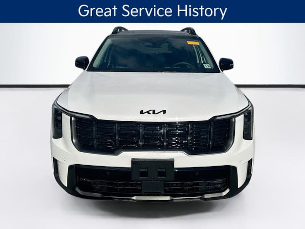 2025 Kia Sorento X-Line EX 2.5L I4 DGI Turbocharged DOHC 16V LEV3-SULEV30 281hp 8 Speed Dual Clutch AWD 4D Sport Utility Glacial White Pearl 20/27 City/Highway MPG 20/27 City/Highway MPG Visit our Website for a Complimentary CarFax Report!!!, Great Service History, KIA Certified Pre-Owned, 10 Year / 100,000 Mile Powertrain Coverage, 5 Year / 60,000 Mile Comprehensive Coverage, 12 Month / 12,000 Mile Platinum Coverage, 10 Year Unlimited Mile Roadside Assistance, Free First Oil Change, Auto Reward Program, AWD, 3rd row seats: split-bench, Apple CarPlay & Android Auto, Auto High-beam Headlights, Automatic temperature control, Exterior Parking Camera Rear, Front dual zone A/C, Front fog lights, Fully automatic headlights, Heated front seats, Leather steering wheel, Navigation System, Power driver seat, Power Liftgate, Power moonroof, Power passenger seat, Remote keyless entry, SynTex Artificial Leather Seat Trim, 4-Wheel Disc Brakes, 6 Speakers, ABS brakes, Air Conditioning, Alloy wheels, AM/FM radio: SiriusXM, Auto-Dimming Mirror w/HomeLink (PnP), Auto-dimming Rear-View mirror, Brake assist, Bumpers: body-color, Carpeted Floor Mats, Delay-off headlights, Driver door bin, Driver vanity mirror, Dual front impact airbags, Dual front side impact airbags, Electronic Stability Control, Emergency communication system: 911 Connect, Four wheel independent suspension, Front anti-roll bar, Front Bucket Seats, Front Center Armrest, Front reading lights, Heated door mirrors, Heated Front Bucket Seats, Illuminated entry, Knee airbag, Leather Shift Knob, Low tire pressure warning, Occupant sensing airbag, Outside temperature display, Overhead airbag, Overhead console, Panic alarm, Passenger door bin, Passenger vanity mirror, Power door mirrors, Power steering, Power windows, Radio data system, Radio: AM/FM Standard Sound System, Rear anti-roll bar, Rear reading lights, Rear side impact airbag, Rear window defroster, Rear window wiper, Security system, Speed control, Speed-sensing steering, Split folding rear seat, Spoiler, Steering wheel mounted audio controls, Tachometer, Telescoping steering wheel, Tilt steering wheel, Traction control, Trip computer, Turn signal indicator mirrors, Variably intermittent wipers, Wheels: 20" Gloss Black X-Line Alloy, AWD, 3rd row seats: split-bench, Apple CarPlay & Android Auto, Auto High-beam Headlights, Automatic temperature control, Exterior Parking Camera Rear, Front dual zone A/C, Front fog lights, Fully automatic headlights, Heated front seats, Leather steering wheel, Navigation System, Power driver seat, Power Liftgate, Power moonroof, Power passenger seat, Remote keyless entry, SynTex Artificial Leather Seat Trim.