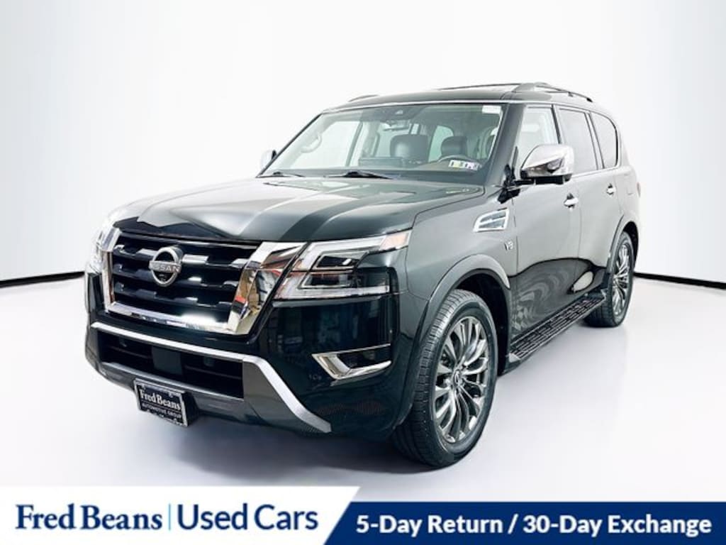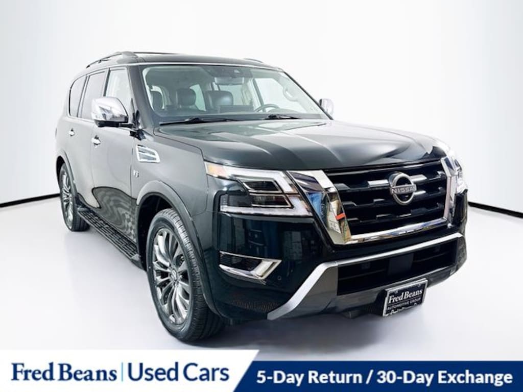 2022 Nissan Armada Platinum 5.6L V8 DOHC 32V LEV3-ULEV125 400hp 7-Speed Automatic 4WD 4D Sport Utility Super Black Great Service History, 7 Year / 100k Powertrain Warranty, Free First Oil Change, 5 Day Return / 30 Day Exchange, Auto Reward Program, 4WD, Navigation System.