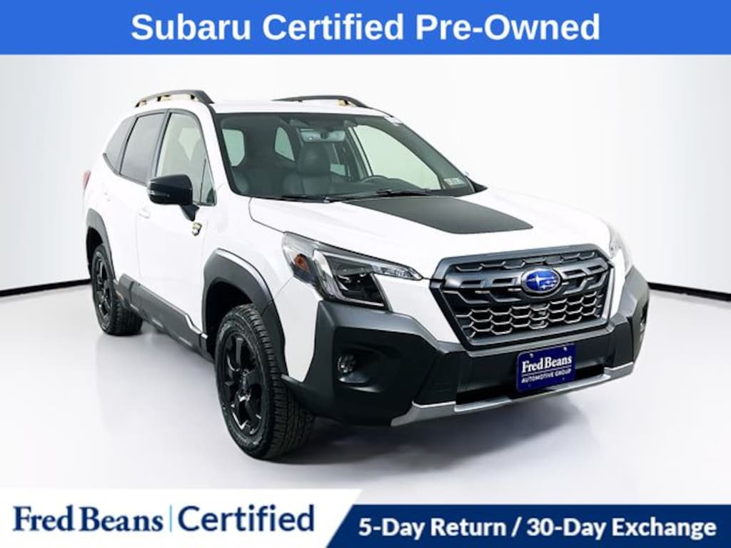 2022 Subaru Forester Wilderness 2.5L 4-Cylinder DOHC 16V Lineartronic CVT AWD 4D Sport Utility Crystal White Pearl Bought & Serviced at Fred Beans, Local Trade, Great Service History, Non Smoker, Auto-Dimming Mirror w/Compass & HomeLink, Exterior Parking Camera Rear, harman/kardon 576W Amp & Speaker System, Heated front seats, Navigation System, Power driver seat, Power moonroof: Panoramic, Power Rear Gate, STARLINK/Apple CarPlay/Android Auto.