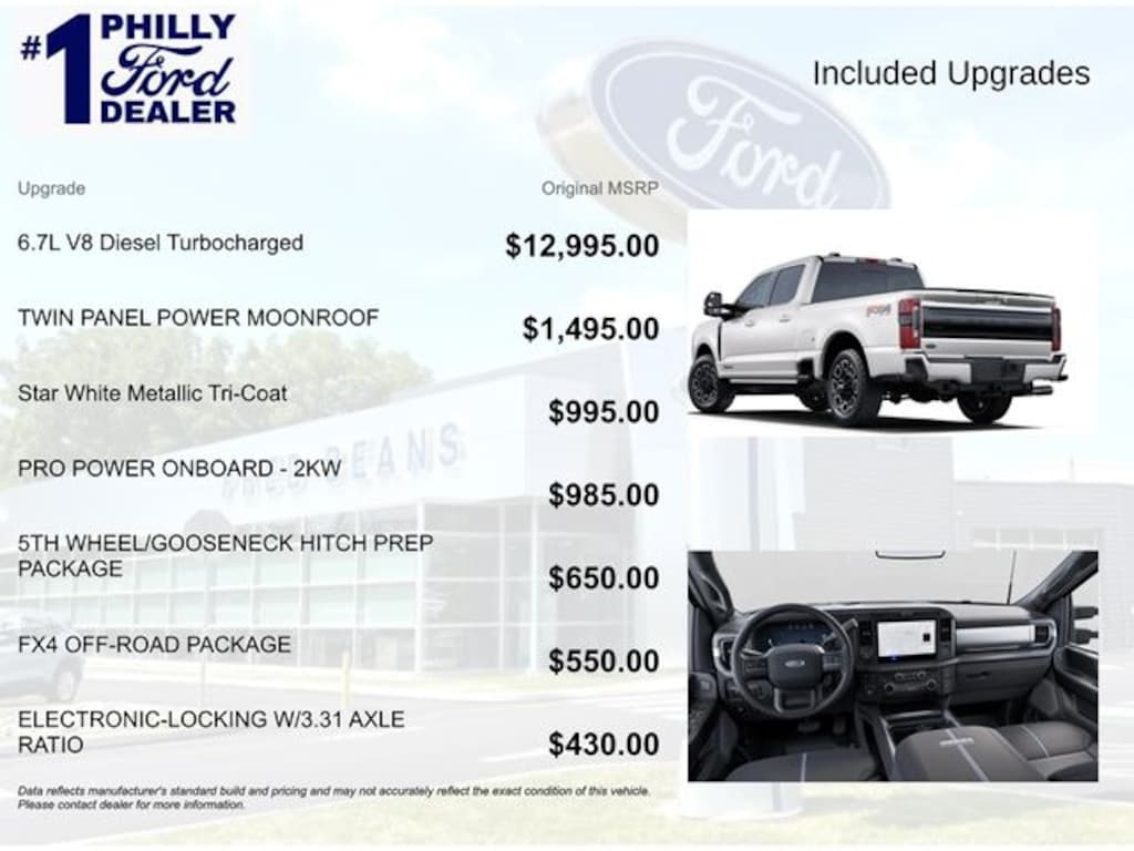 Star White Metallic Tri-Coat 2025 Ford F-350SD Platinum 4WD 10-Speed Automatic 6.7L High Output Power Stroke V8 Diesel Price includes: $2000 - Retail Customer Cash