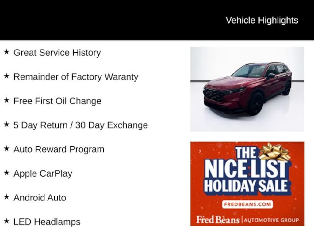 For better peace of mind all our used vehicles have a 127-point inspection and come with a 5-day return, 30-day exchange (As-Is vehicles are excluded). Our exclusive Auto Rewards Program provides better value with Free First Oil change, Free Pa State Safety inspections, discounts for local merchants and more. Plus, you can earn up to $2000 towards your next vehicle just by servicing with Fred Beans! As Fred Beans always says, our used cars are better because our reputation depends on it.