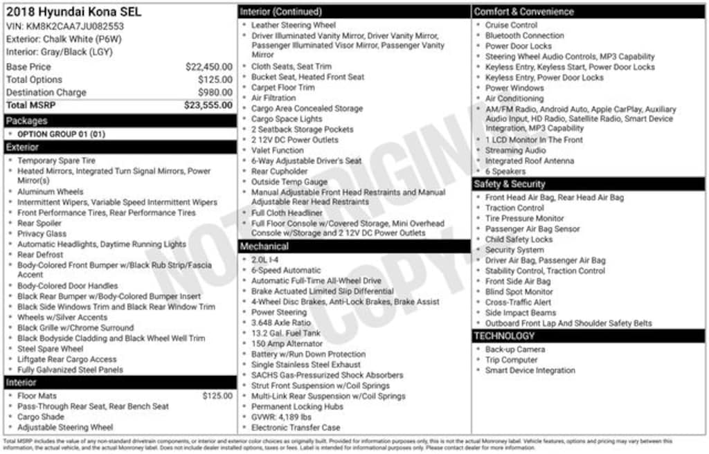 Don't miss your chance to experience the exceptional value and capabilities of this 2018 Hyundai Kona SEL. Schedule a test drive today and discover why this versatile crossover is the perfect fit for your next adventure.