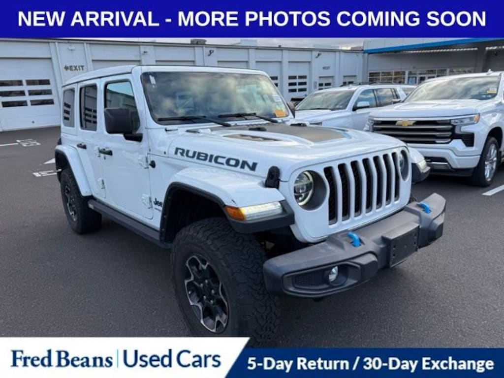 CARFAX One-Owner.Recent Arrival! 2022 Jeep Wrangler Unlimited Rubicon 4xe 2.0L I4 DOHC 8-Speed Automatic 4WD 4D Sport Utility Bright White Clearcoat Triton Certified Classic Vehicle, 3 Month / 4,000 Mile Comprehensive Warranty, Free First Oil Change, 5 Day Return / 30 Day Exchange, Auto Reward Program, 1 TOUCH SKYTOP!!!, 2.0L I4 DOHC, Apple CarPlay/Android Auto, Body Color Rubicon Highline Flare, Heated Front Seats, Radio: Uconnect 4C Nav w/8.4 Display, Remote Start System.Certified. Certification Program Details: Triton Certified Shield Classic 3-Month or 4,000-Mile Comprehensive Coverage ($100 deductible) 100+ Multipoint Inspection PA State Inspection & Emissions Test Oil, Lube, & Filter Service Completed 5-Day Return Policy1 30-Day Exchange Policy2 CARFAXTM Report AutoRewards Membership See salesperson for additional offers & complete details.For better peace of mind all our used vehicles have a 127-point inspection and come with a 5-day return, 30-day exchange (As-Is vehicles are excluded). Our exclusive Auto Rewards Program provides better value with Free First Oil change, Free Pa State Safety inspections, discounts for local merchants and more. Plus, you can earn up to $2000 towards your next vehicle just by servicing with Fred Beans! As Fred Beans always says, our used cars are better because our reputation depends on it.Although every reasonable effort has been made to ensure the accuracy of the information contained on this site, absolute accuracy cannot be guaranteed. This site, and all information and materials appearing on it, are presented to the user as is without warranty of any kind, either express or implied. All vehicles are subject to prior sale. Price does not include applicable tax, title, license, processing and/or documentation fees. Vehicles shown at different locations are not currently in our inventory (Not in Stock) but can be made available to you at our location within a reasonable date from the time of your request, not to exceed one week. Residency restrictions may apply.