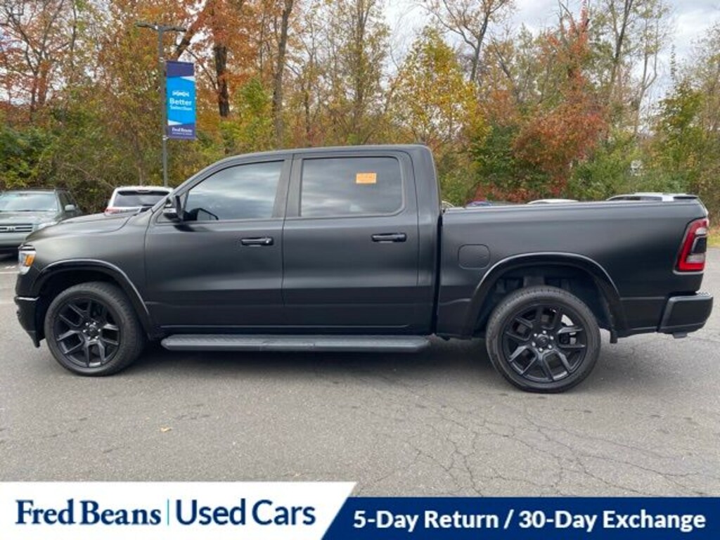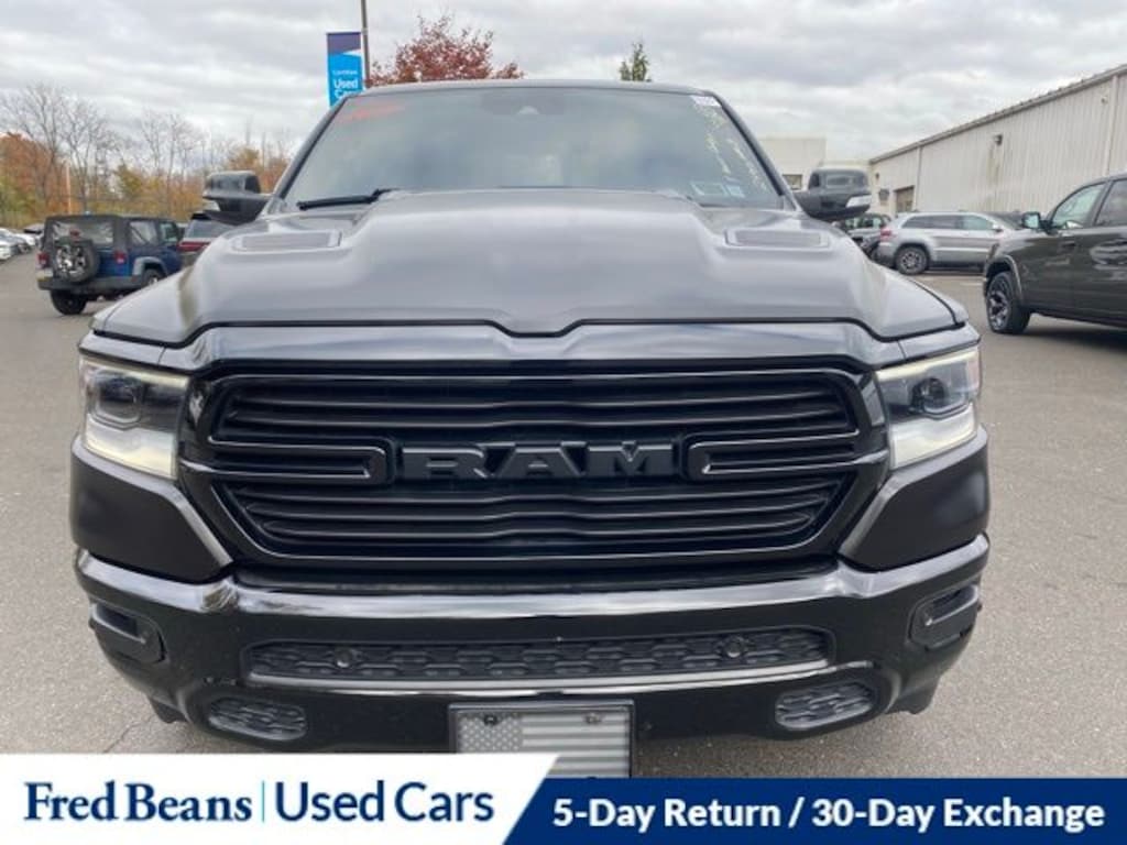 Recent Arrival! 2022 Ram 1500 Laramie HEMI 5.7L V8 Multi Displacement VVT 8-Speed Automatic 4WD 4D Crew Cab Diamond Black Crystal Pearlcoat Great Service History, Free First Oil Change, Apple CarPlay/Android Auto, Dome Dual LED Reading Lamp, Dual-Pane Panoramic Sunroof, Heated Steering Wheel, LED Dome/Reading Lamp, Wireless Charging Pad.