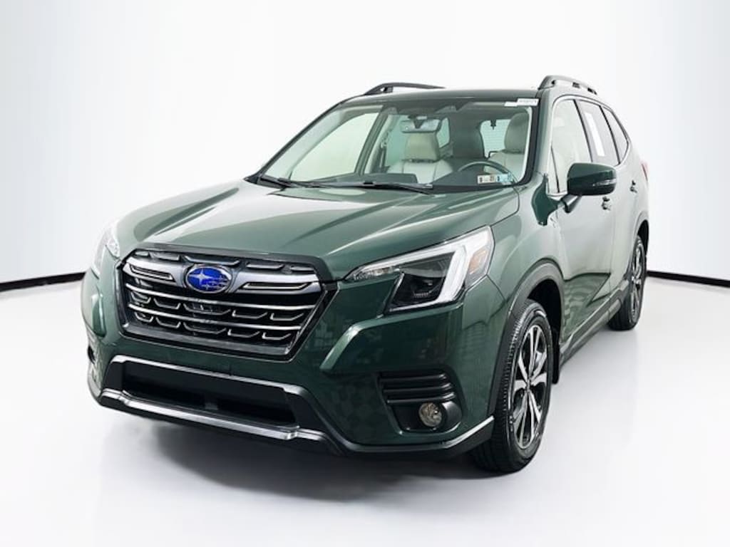 Recent Arrival! 2023 Subaru Forester Limited 2.5L 4-Cylinder DOHC 16V Lineartronic CVT AWD 4D Sport Utility Cascade Green Silica Local Trade, Great Service History, Non Smoker, Auto-Dimming Mirror w/Compass & HomeLink, Exterior Parking Camera Rear, Fully automatic headlights, harman/kardon 9-Speaker Audio System, Heated front seats, Heated Steering Wheel, Navigation System, Power driver seat, Power Liftgate, Power moonroof: Panoramic, Reverse Automatic Braking System (RAB), STARLINK/Apple CarPlay/Android Auto.